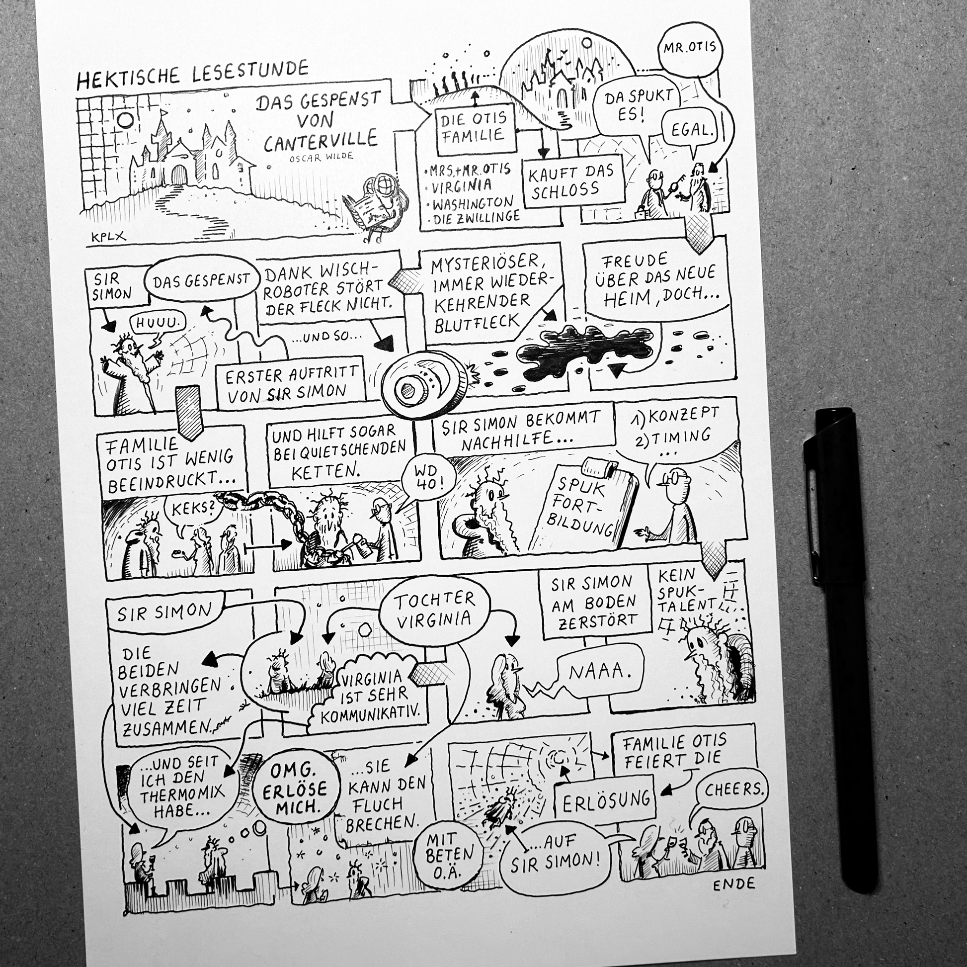Limited art print of the Kplx drawing "Hectic Reading Hour 1" in A4 size (21 x 29.7 cm) on 250g paper. Each print is signed and numbered. There are 20 signed prints for each Kplx original drawing.